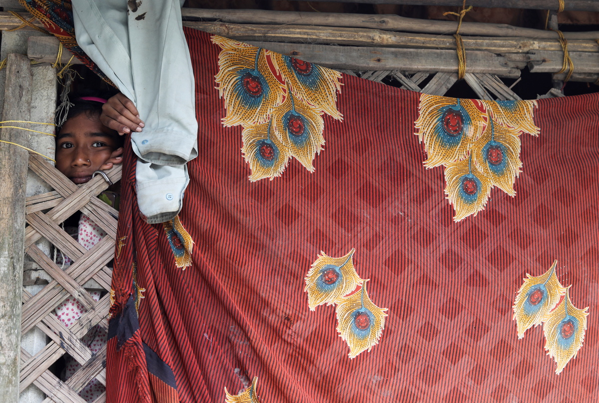 Papri Haldar, 11, whose father died in a tiger attack during a fishing trip deep inside the forest, peeps out of her home on the island of Satjelia in the Sundarbans, India, November 20, 2020. Almost all of the 2,000 rupees that Papri's mother Parul makes each month to run her household and send Papri to school comes from fishing and crabbing. REUTERS/Anushree Fadnavis REUTERS/Anushree Fadnavis