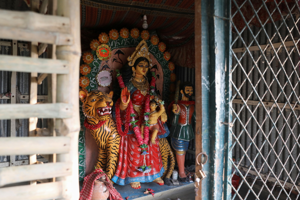 A boat ferrying people across the islands passes a window near the island of Satjelia in the Sundarbans, India, December 16, 2019. REUTERS/Anushree Fadnavis People travel on a boat near the island of Satjelia in the Sundarbans, India, December 16, 2019. REUTERS/Anushree Fadnavis Parul Haldar, 39, whose husband died in a tiger attack during a fishing trip deep inside the forest, reacts while sorting out fish that was laid out in a net by her family, on the island of Satjelia in the Sundarbans, India, November 20, 2020. "If I don't go to the jungle, I won't have enough food to eat," said Haldar who travels deeper into the forests twice a month to catch crabs, rowing six hours on a rickety boat along with her mother and staying in the undergrowth for several days. REUTERS/Anushree Fadnavis Parul Haldar, 39, whose husband died in a tiger attack during a fishing trip deep inside the forest, and her daughter Papri Haldar, 11, sit together outside their home on the island of Satjelia in the Sundarbans, India, November 20, 2020. Almost all of the 2,000 rupees ($27) Haldar makes each month to run her household and send Papri to school comes from fishing and crabbing. "No matter how hard it is, I want to educate her," said Haldar. REUTERS/Anushree Fadnavis A man carries a sack of harvested rice on the island of Satjelia in the Sundarbans, India, November 20, 2020. REUTERS/Anushree Fadnavis Papri Haldar, 11, whose father died in a tiger attack during a fishing trip deep inside the forest, holds flowers in her hands on the island of Satjelia in the Sundarbans, India, November 20, 2020. Almost all of the 2,000 rupees that Papri's mother Parul makes each month to run her household and send Papri to school comes from fishing and crabbing. REUTERS/Anushree Fadnavis REUTERS/Anushree Fadnavis Namita Mondal, 32, whose husband died due to a tiger attack, sits by her home on the island of Satjelia in the Sundarbans, India, November 21, 2020. REUTERS/Anushree Fadnavis A man reads a piece of paper at a restaurant on the island of Gosaba in the Sundarbans, India, November 22, 2020. REUTERS/Anushree Fadnavis Namita Mondal, 32, whose husband died due to a tiger attack, gestures as she calls out to a family member from her home on the island of Satjelia in the Sundarbans, India, December 16, 2019. REUTERS/Anushree Fadnavis A Bonobibi shrine, a goddess who is worshipped by the local people and fisher folks before entering the forest, stands on the island of Gosaba in the Sundarbans, India, November 22, 2020. REUTERS/Anushree Fadnavis A photograph of Manoj Mondol, Namita Mondal's husband who died due to a tiger attack, sits on a shelf in Mondol's home on the island of Satjelia in the Sundarbans, India, November 21, 2020. REUTERS/Anushree Fadnavis Namita Mondal, 32, whose husband died due to a tiger attack, talks on her mobile phone near her home on the island of Satjelia in the Sundarbans, India, December 16, 2019. REUTERS/Anushree Fadnavis Arti Mondal, 70, whose husband died due to a tiger attack around 20 years ago, carries a stack of harvested paddy on her head as she works on a field on the island of Satjelia in the Sundarbans, India, December 16, 2019. REUTERS/Anushree Fadnavis People go fishing on a river near the island of Satjelia in the Sundarbans, India, December 16, 2019. REUTERS/Anushree Fadnavis Trousers belonging to Manoj Mondal, that were recovered after Mondal was attacked by a tiger, lie on the floor of his home on the island of Satjelia in the Sundarbans, India, December 16, 2019. REUTERS/Anushree Fadnavis Sarodini Mondal, 52, whose husband died due to a tiger attack, poses for a photograph outside her home on the island of Satjelia in the Sundarbans, India, December 15, 2019. REUTERS/Anushree Fadnavis A woman sells fish at a market on the island of Gosaba in the Sundarbans, India, November 22, 2020. REUTERS/Anushree Fadnavis Fish are displayed at a market on the island of Gosaba in the Sundarbans, India, November 22, 2020. REUTERS/Anushree Fadnavis