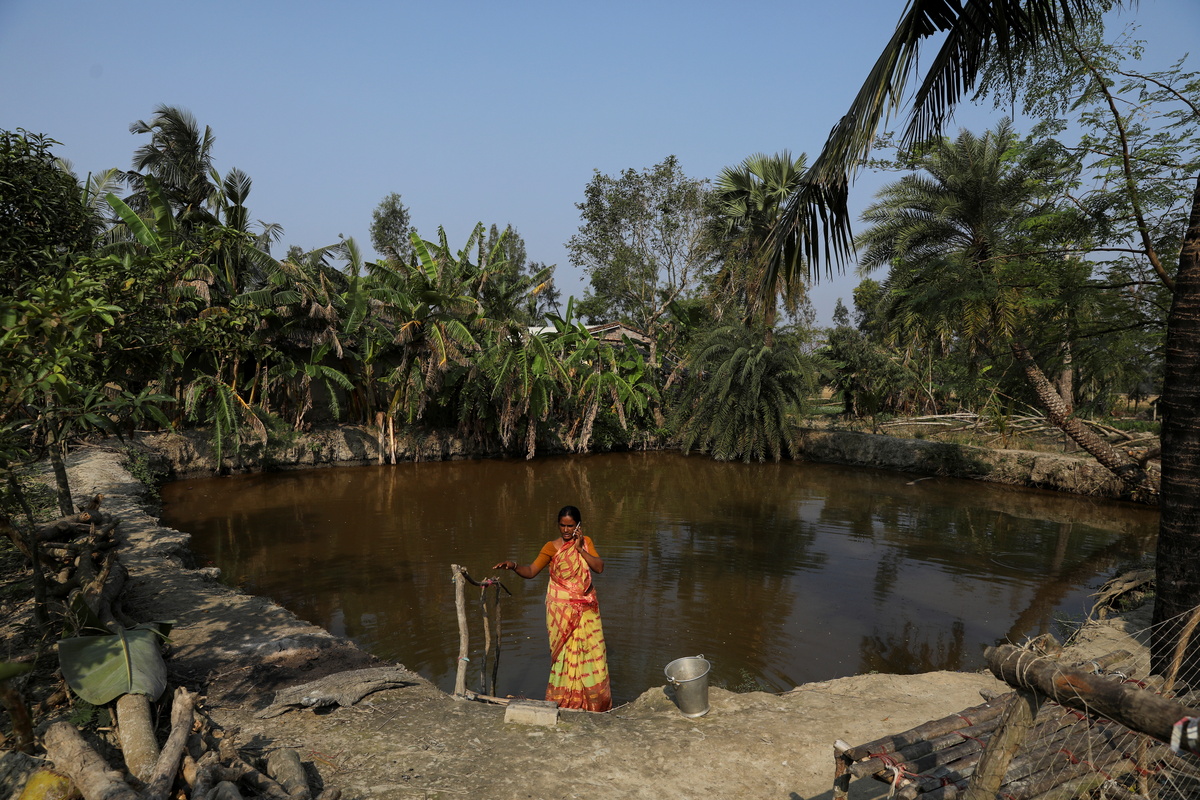 A woman washes utensils in a pond outside her home on the island of Satjelia in the Sundarbans, India, December 15, 2019. REUTERS/Anushree Fadnavis SEARCH "FADNAVIS SUNDARBANS" FOR THIS STORY. SEARCH "WIDER IMAGE" FOR ALL STORIES. TPX IMAGES OF THE DAY.