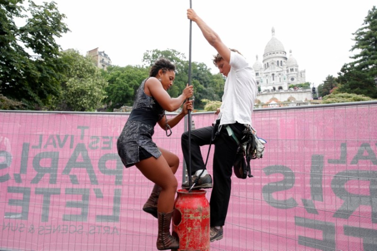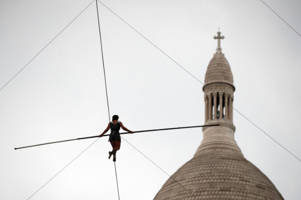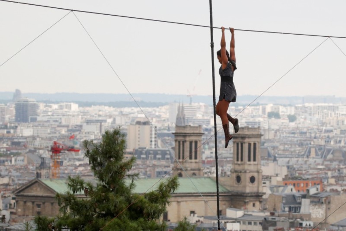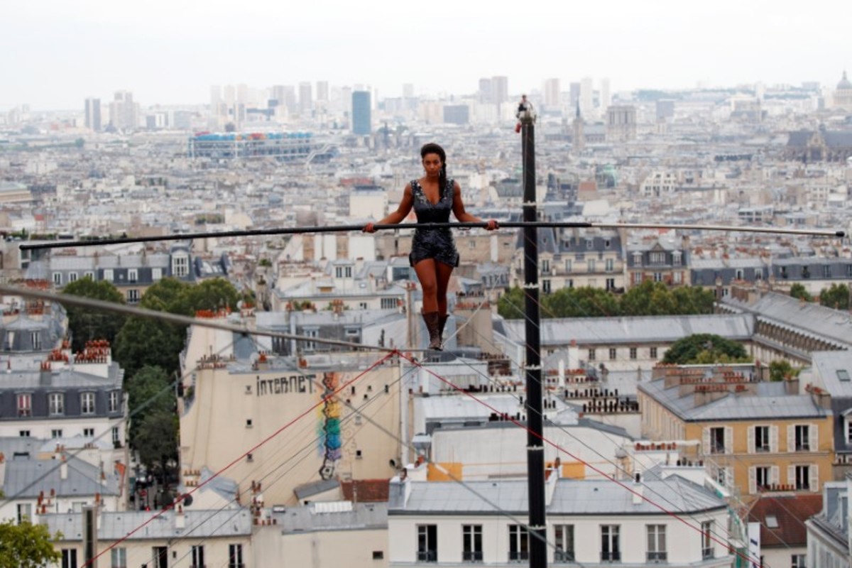 PARIS (Reuters) - French tightrope artist Tatiana-Mosio Bongonga impressed hundreds of Parisians on Saturday with a performance that featured a walk on a rope suspended 35 meters (115 feet) above the ground in the city's hilly northern district of Montmartre.