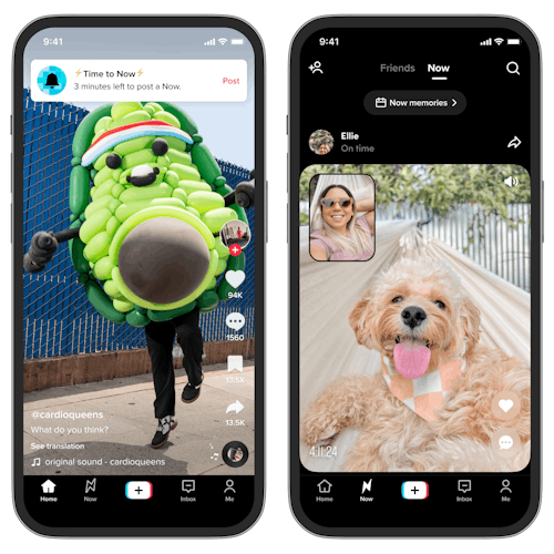 Like BeReal, TikTok Now uses the front and back camera to capture whatever you’re looking at at a random time during the day (with a notification that tells you it’s “Time to Now”). Posts from your friends are hidden until you post, and there is some concept of an “on time” just like BeReal.