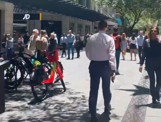 Other footage shows commuters walking down the stairs at Wynard Station, as well as eating in the Pitt Street food court.