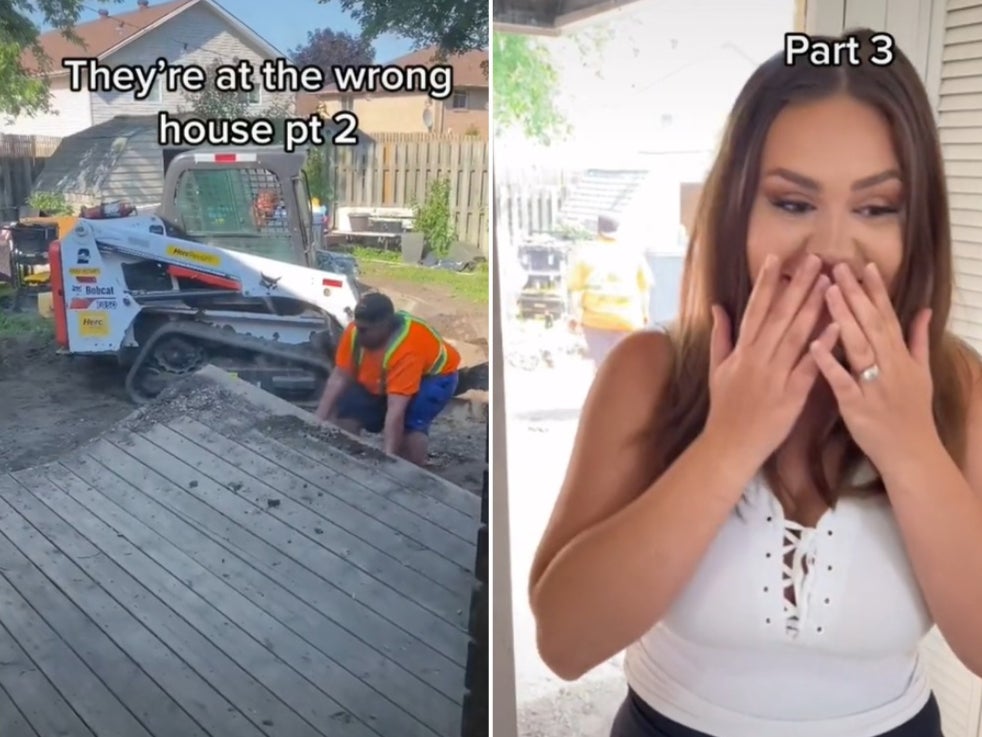 (Picture: TikTok/chloefountainn)A woman has shared a building blunder after workers apparently turned up at her house by mistake – and she decided to let them continue with the work.