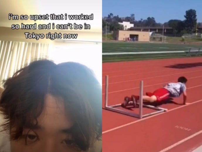 TikToker, Ben Chi (@hel1enkellersonlyfans) looked downcast as the music played and he wrote: “I’m so upset that I worked so hard at the Olympics.”