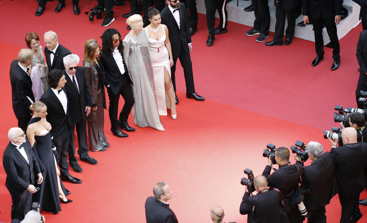 British actress Tilda Swinton, in a sparkling silver gown, singer Selena Gomez and actors Bill Murray and Adam Driver made their grand entrance to the first screening and opening gala alongside the film's director Jim Jarmusch.