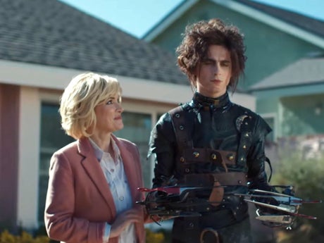 As in the Nineties movie, the advert sees Chalamet play a young man with scissors for hands. Ryder – who had played Kim in the original film – stars in the clip as his mother.