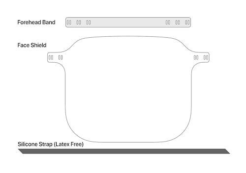 Cook says the face shields "pack flat — 100 to a box" and that each one "assembles in less than two minutes and is fully adjustable."