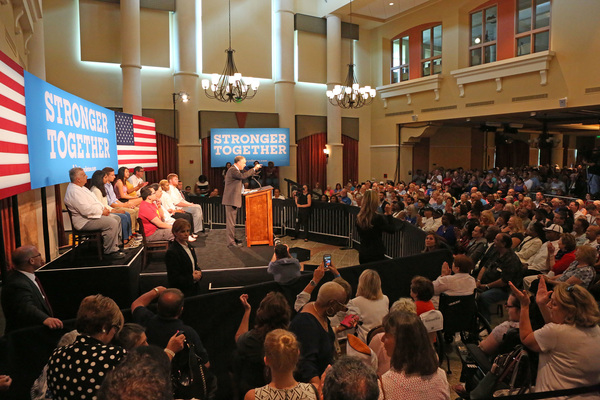 "I was rolled out by Hillary Clinton as her running mate in Miami, and here we are in Volusia County and Daytona," Kaine said to the standing-room only crowd of about 600 at Daytona State College. "I think you can see Florida is really, really important to us."