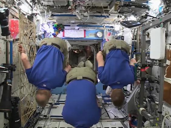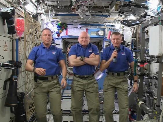 Major Tim Peake and his fellow astronauts have posted a festive message from the International Space Station to friends and family back home on Earth.