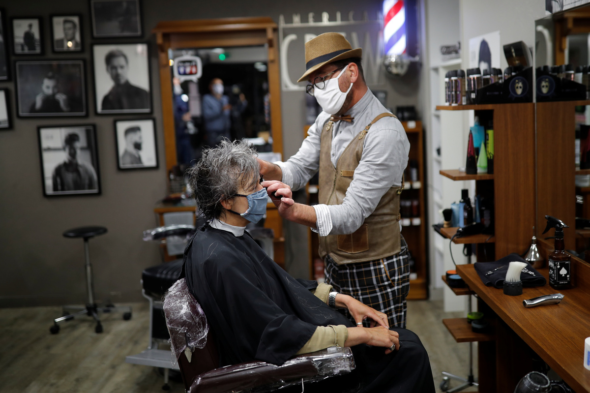 His first post-lockdown customer, Caroline Corbeau, was ready for a new haircut. "I really needed it. It was great to have this opportunity," she said.