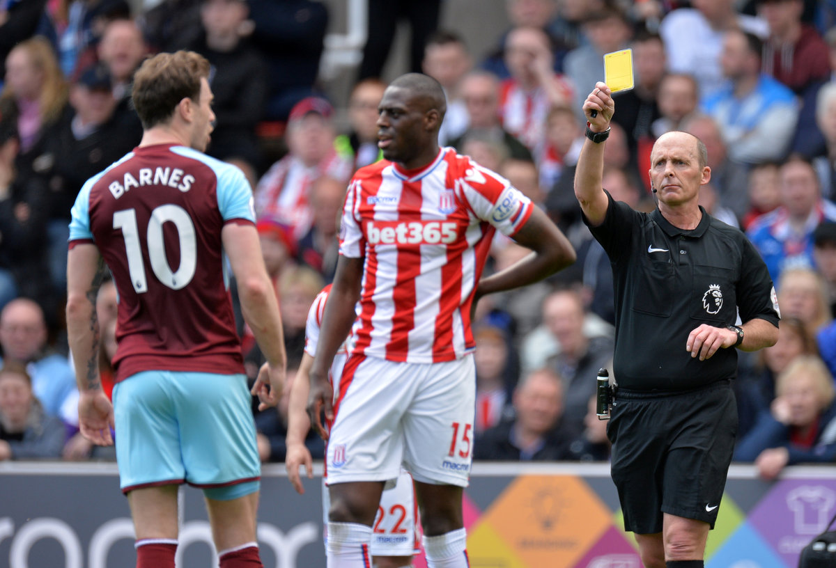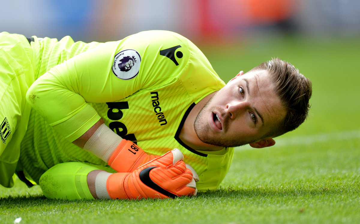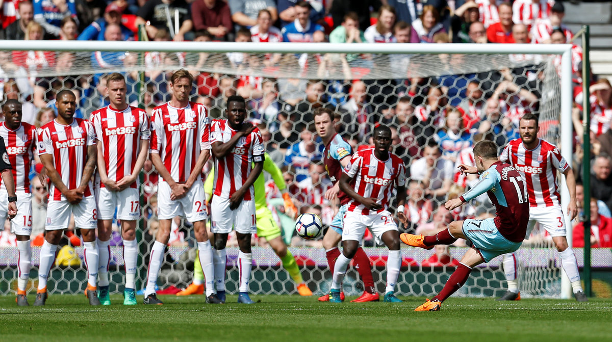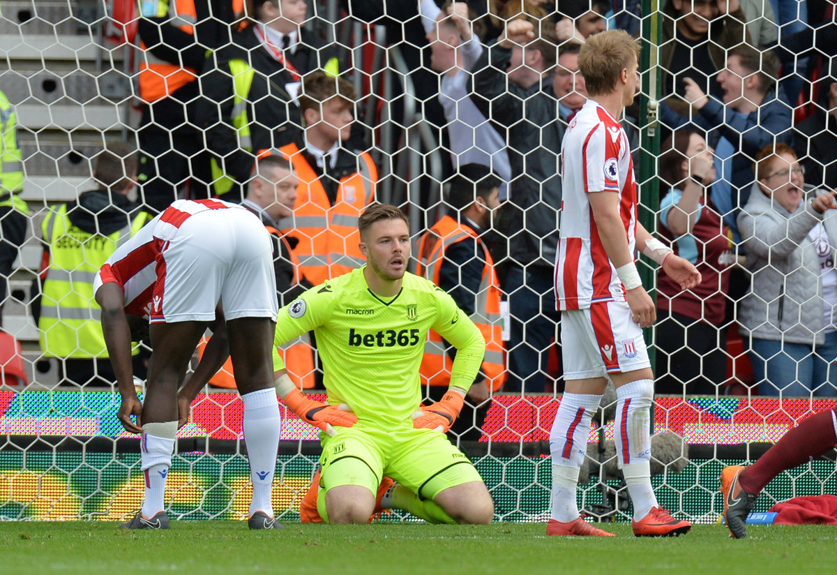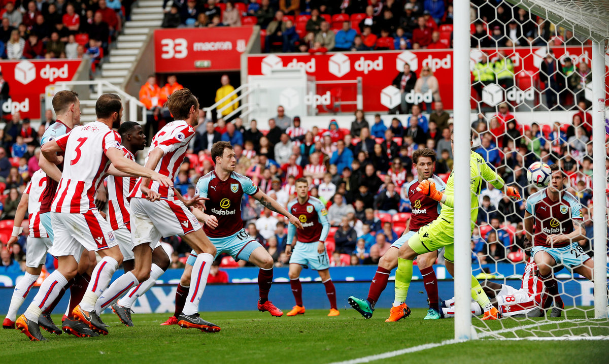 Soccer Football - Premier League - Stoke City v Burnley - bet365 Stadium, Stoke-on-Trent, Britain - April 22, 2018 Stoke City's Jack Butland REUTERS/Peter Powell Soccer Football - Premier League - Stoke City v Burnley - bet365 Stadium, Stoke-on-Trent, Britain - April 22, 2018 Burnley's Chris Wood in action with Stoke City's Bruno Martins Indi REUTERS/Peter PowellSoccer Football - Premier League - Stoke City v Burnley - bet365 Stadium, Stoke-on-Trent, Britain - April 22, 2018 Burnley's Ashley Barnes is booked by referee Mike Dean REUTERS/Peter Powell Soccer Football - Premier League - Stoke City v Burnley - bet365 Stadium, Stoke-on-Trent, Britain - April 22, 2018 Burnley's Johann Berg Gudmundsson takes a freekick Action Images via Reuters/Ed Sykes Soccer Football - Premier League - Stoke City v Burnley - bet365 Stadium, Stoke-on-Trent, Britain - April 22, 2018 Burnley's Ashley Barnes scores their first goal Action Images via Reuters/Ed Sykes Soccer Football - Premier League - Stoke City v Burnley - bet365 Stadium, Stoke-on-Trent, Britain - April 22, 2018 Stoke City's Jack Butland reacts after Burnley's first goal REUTERS/Peter Powell Soccer Football - Premier League - Stoke City v Burnley - bet365 Stadium, Stoke-on-Trent, Britain - April 22, 2018 Burnley's Ashley Barnes celebrates scoring their first goal with team mates Action Images via Reuters/Ed Sykes