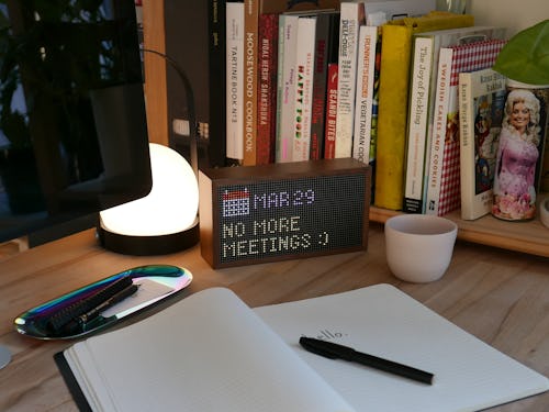 Unfortunately, you can’t hang the Tidbyt on the wall — at least not easily — because of the USB-C to C cable that sticks out of the back of the device. But it makes for the perfect desk gadget. You can bet if I currently were working from an office desk — and not from my couch at home — I’d have my Tidbyt set up and running for all to see.