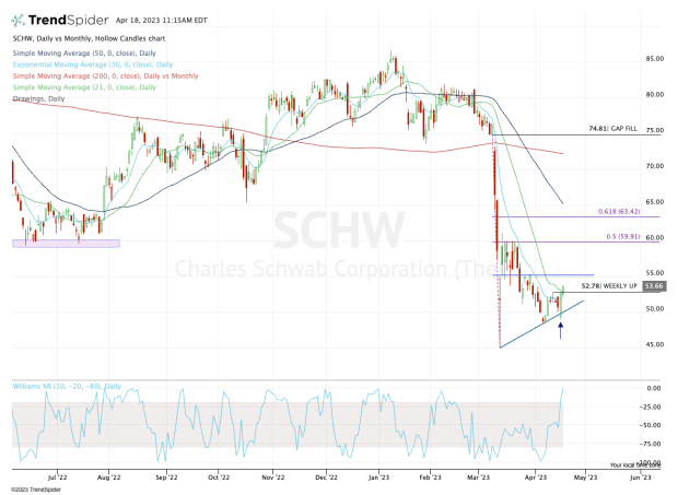 However, Charles Schwab stock ended up closing higher by about 4% on the day and is continuing higher today. It’s got investors wondering if this name has the all-clear.