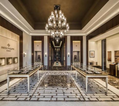 Further inside, the boutique opens up to a private lounge and sales salon, elegantly furnished with precious woods and plush leather upholstery. Within the private lounge is a library housing the company's horological and historical literature, allowing visitors to be further immersed in the Patek Philippe universe.