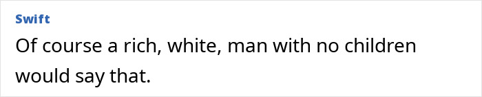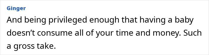 One commenter wrote, “Easy sentiment to hold when you’re not the one cranking the baby out of your own body (and probably not doing most of the child rearing, statistically).”
