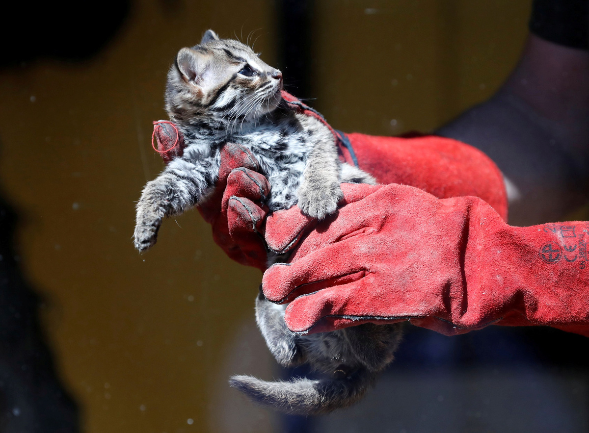 A seven-week-old leopard cat born in a Hungarian zoo was allowed out for the first time on Friday to enjoy the spring sunshine but he will have to wait a while before he can meet visitors due to the coronavirus pandemic.