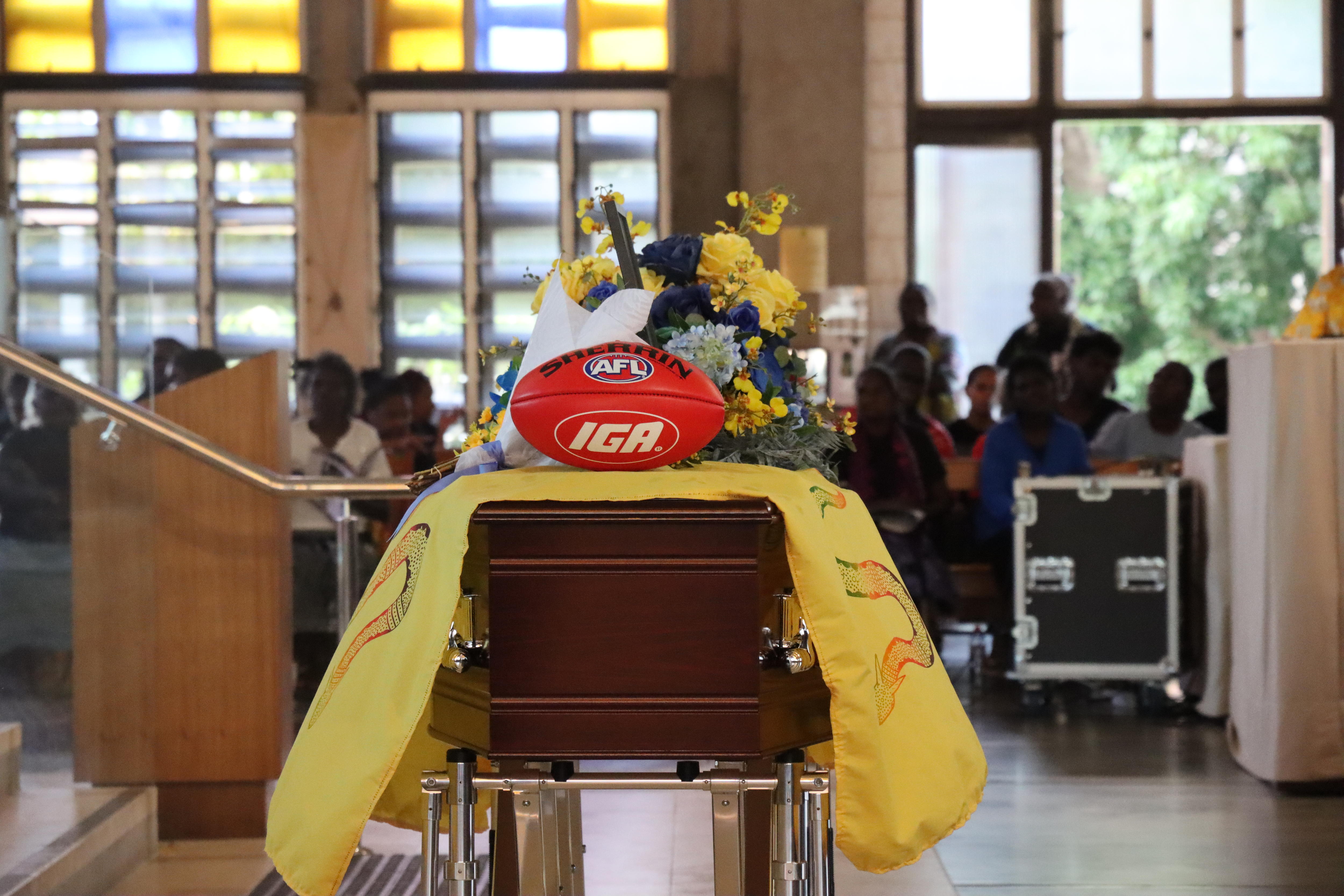 Hundreds of people filled the pews at St Mary's Cathedral in Darwin on Wednesday to pay tribute to the father, grandfather, star footballer and respected leader in the Tiwi Islands community.
