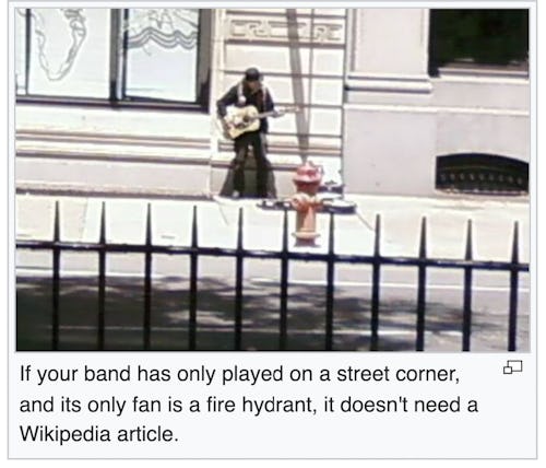 Sorry, no one cares about your garage band. This isn’t the place for journaling your dream or logging your childhood stuffed animals or your really thoroughly calculated doomsday prediction. When articles don’t meet the free encyclopedia’s strict standards, they’re sent to the curb. Goodbye Earlobe fetishism, Judaism and bus stops, and List of jellyfish who have stung notable people.