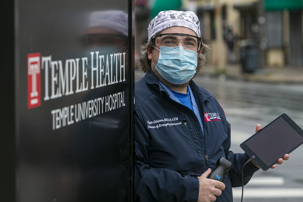 But in the emergency department at Temple University Hospital, he never carries one — despite having evaluated the lungs of hundreds of COVID-19 patients since April.