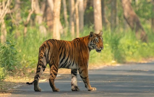 British colonialism turned India’s tigers into trophies. Between 1860 and 1950, more than 65,000 were shot for their skins. The fortunes of the Bengal tiger, one of Earth’s biggest species of big cat, did not markedly improve post-independence. The hunting of tigers – and the animals they eat, like deer and wild pigs – continued, while large tracts of their forest habitat became farmland.