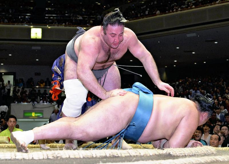 The Georgian wrestler steadily advanced forward after the jump-off as he delivered powerful thrusts against Tamawashi. After driving the maegashira to the edge of the ring, Tochinoshin showed perfect timing to slap his opponent to the surface.