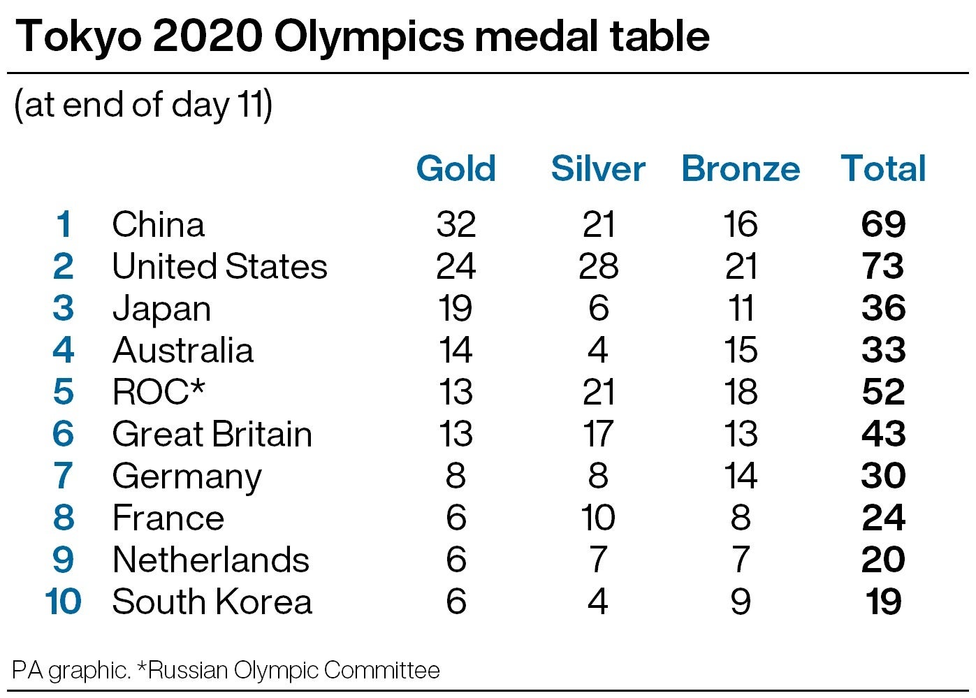 Here, the PA news agency looks back at the highlights of day 11 at the Games.