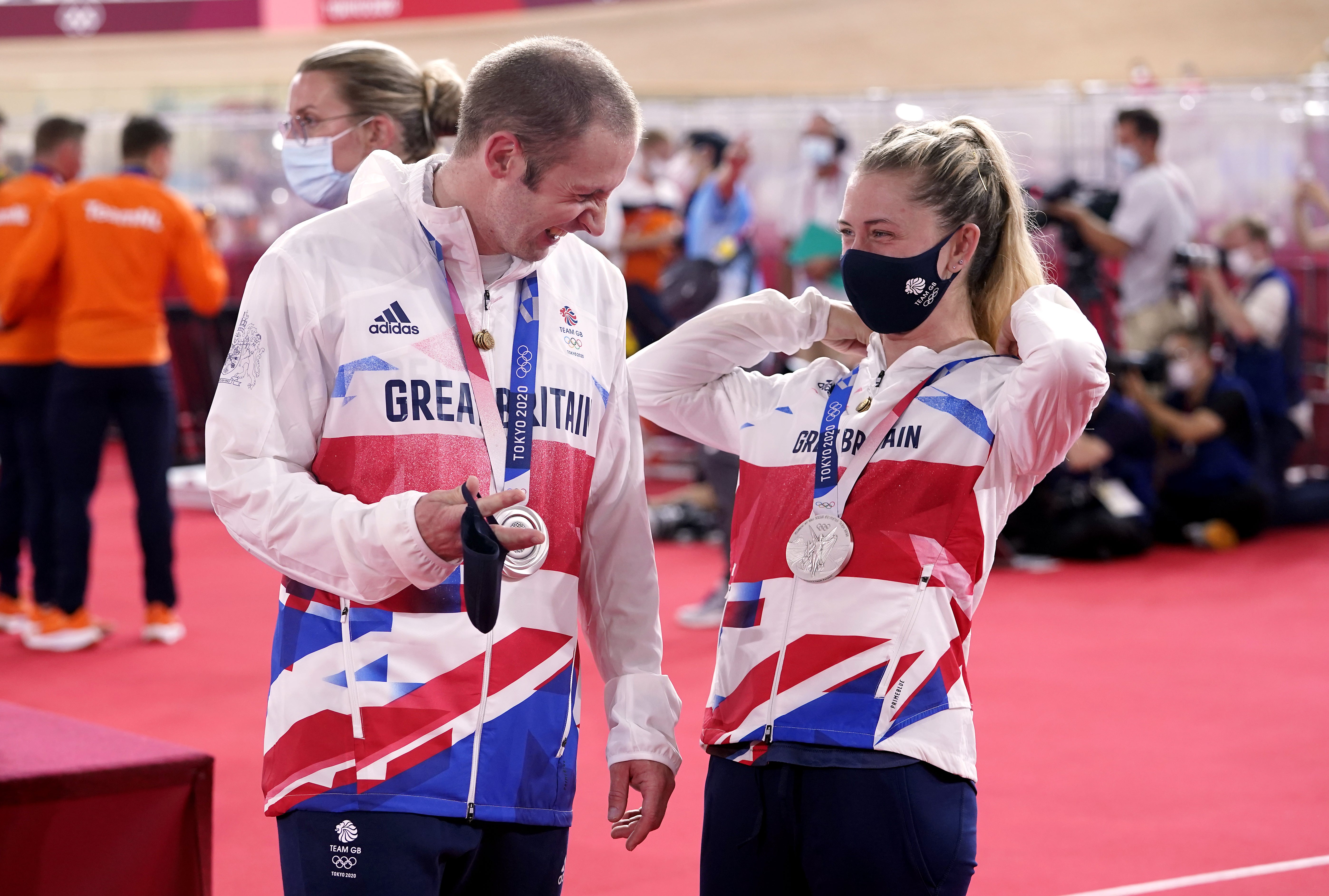 The women’s team pursuit squad led by Laura Kenny took silver at the Izu Velodrome behind Germany, who won gold in a world record time, while her husband Jason was a silver medallist in the men’s team sprint behind Holland.