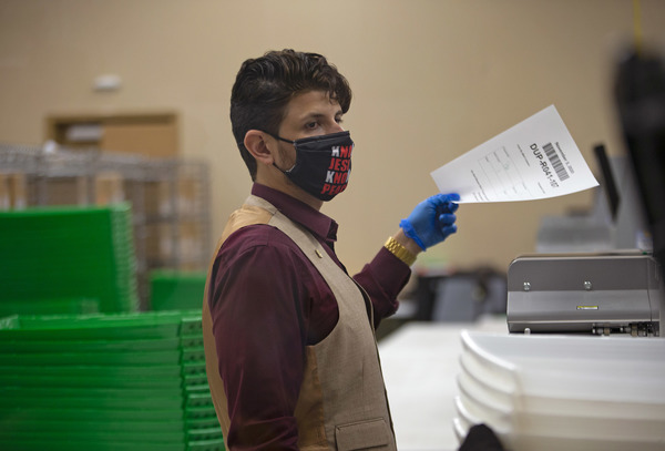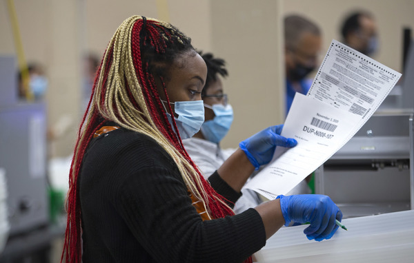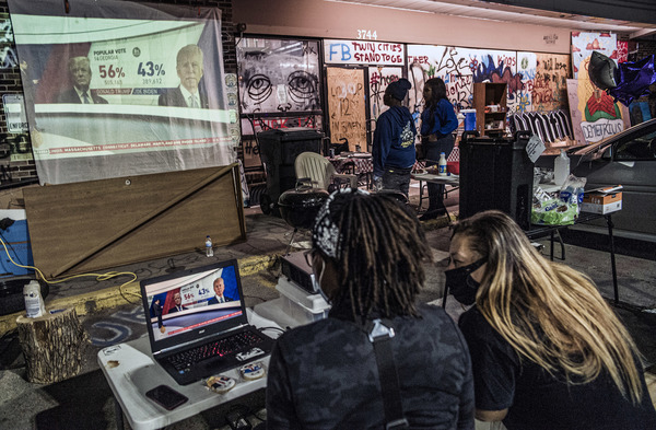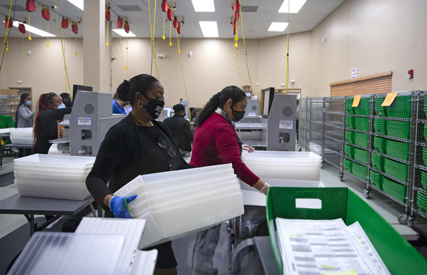 Carlos Remigio, right, a volunteer, and Michael Lindsay, middle left, a Ramsey County employee, unload the car of an election judge, collecting sealed ballot boxes and voting equipment on Tuesday, Nov. 3, 2020, in St. Paul, Minnesota. (Aaron Lavinsky/Minneapolis Star Tribune/TNS)Linda Garrett-Johnson sits with her daughter, Kimberley Johnson, as she looks at election returns on her phone at an election watch party at the home of one of her campaign staff in Apple Valley, Minnesota, on Tuesday, Nov. 3, 2020. (Jeff Wheeler/Minneapolis Star Tribune/TNS)Protesters gather near the White House in Washington, D.C., during presidential election night on Tuesday, Nov. 3, 2020. (Yuri Gripas/Abaca Press/TNS)A man walks past a giant inflatable chicken depiciting President Donald Trump during presidential election night near the White House in Washington, D.C., during presidential election night on Tuesday, Nov. 3, 2020. (Yuri Gripas/Abaca Press/TNS)Amanda Garcia, left, watches returns with her friends and family n Apple Valley, Minnesota, on Tuesday, Nov. 3, 2020. (Jeff Wheeler/Minneapolis Star Tribune/TNS)Ramsey County intern Naimo Abdi directs an election judge as he drops off ballots and election equipment at the Ramsey County Elections Office in St. Paul, Minnesota, on Tuesday, Nov. 3, 2020. (Aaron Lavinsky/Minneapolis Star Tribune/TNS)Linda Garrett-Johnson watches election returns while attending an election party in her friend's garage in Apple Valley, Minnesota, on Tuesday, Nov. 3, 2020. (Jeff Wheeler/Minneapolis Star Tribune/TNS)Dustin Black and his wife Mimi, left, watches election results with friends Chris and Amanda Moon around a fire and fully stocked bar in their St. Anthony Park, Minnesota, back yard after casting their ballots on election day, Tuesday, Nov. 3, 2020. (Mark Vancleave/Minneapolis Star Tribune/TNS)People watch the presidential race coverage on a projector at the George Floyd memorial site on election night on Tuesday, Nov. 3, 2020, in Minneapolis. (Richard Tsong-Taatarii/Minneapolis Star Tribune/TNS)Broward County Supervisor of Elections Pete Antonacci during the general election at the Lauderhill Office Supervisor of Elections in Lauderhill, Florida, on Tuesday, Nov. 3, 2020. (David Santiago/Miami Hearld/TNS)Jason Lewis at the Election Night Party at the DoubleTree Hotel in Bloomington, Minnesota, on Tuesday, Nov. 3, 2020. (Glen Stubbe/Minneapolis Star Tribune/TNS)Candidate for Congress in MN-02, Tyler Kistner, speaks to the crowd at the Election Night Party at the DoubleTree Hotel in Bloomington, Minnesota, on Tuesday, Nov. 3, 2020. (Glen Stubbe/Minneapolis Star Tribune/TNS)Protesters gather near the White House in Washington, D.C., during presidential election night on Tuesday, Nov. 3, 2020. (Yuri Gripas/Abaca Press/TNS)Broward County election department employee counting ballots during the general elections at the Lauderhill Office Supervisor of Elections on Tuesday, November 3, 2020, in Lauderhill, Florida. (David Santiago/Miami Hearld/TNS)Protesters gather near the White House in Washington, D.C., during presidential election night on Tuesday, Nov. 3, 2020. (Yuri Gripas/Abaca Press/TNS)Protesters gather near the White House in Washington, D.C., during presidential election night on Tuesday, Nov. 3, 2020. (Yuri Gripas/Abaca Press/TNS)Broward County election department employee counting ballots during the general election at the Lauderhill Office Supervisor of Elections on Tuesday, November 3, 2020, in Lauderhill, Florida. (David Santiago/Miami Hearld/TNS)A view of the ballots handled by a Broward County election department employee during the general election at the Lauderhill Office Supervisor of Elections on Tuesday, November 3, 2020, in Lauderhill, Florida. (David Santiago/Miami Hearld/TNS)A Broward County election department employee counts ballots during the general election at the Lauderhill Office Supervisor of Elections in Lauderhill, Florida, on Tuesday, Nov. 3, 2020. (David Santiago/Miami Hearld/TNS)Protesters gather near the White House in Washington, D.C., during presidential election night on Tuesday, Nov. 3, 2020. (Yuri Gripas/Abaca Press/TNS)Duluth, Minnesota's 11th precinct co-head polling judges Kathie Trotta, left, and John Keenan place ballots into secure bags to be sealed and dropped off at city hall on Tuesday, Nov. 3, 2020. (Alex Kormann/Minneapolis Star Tribune/TNS)Broward County election department employees counting ballots during the general election at the Lauderhill Office Supervisor of Elections on Tuesday, November 3, 2020, in Lauderhill, Florida. (David Santiago/Miami Hearld/TNS)Minnesota Lt. Governor Peggy Flanagan bumps elbows with DFL Party Chairman Ken Martin before she spoke during the DFL Election Night Watch Party at the Intercontinental Hotel in St. Paul, Minnesota, on Tuesday, Nov. 3, 2020. (Leila Navidi/Minneapolis Star Tribune/TNS)Protesters gather near the White House in Washington, D.C., during presidential election night on Tuesday, Nov. 3, 2020. (Yuri Gripas/Abaca Press/TNS)Protesters gather near the White House in Washington, D.C., during presidential election night on Tuesday, Nov. 3, 2020. (Yuri Gripas/Abaca Press/TNS)