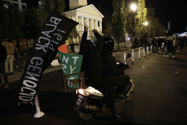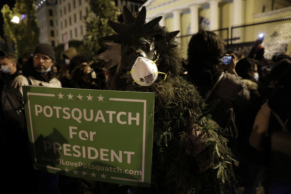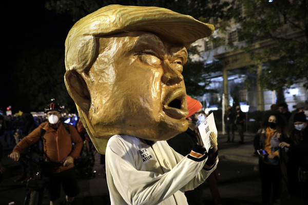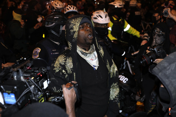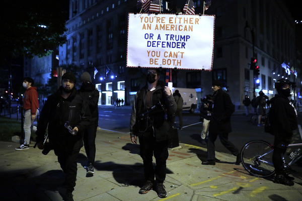 People attend a watch party near the White House in Washington, D.C., during presidential election night on Tuesday, Nov. 3, 2020. (Yuri Gripas/Abaca Press/TNS)