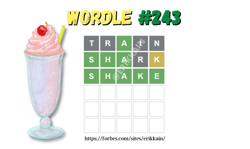 “No great shakes either way. (Wait, we’ve disputed this before! What’s the greatest shake? You say, incorrectly, strawberry, when everyone knows it’s chocolate.) If you hurt yourself in a fall, you need to shake it off and keep going. If your food is bland, you shake on a bit of salt. Ahh! How can anyone keep all these shades of shake straight? Just give it the shake and move on to the next Wordle. (But never forget that the chocolate shake is the correct answer.)”