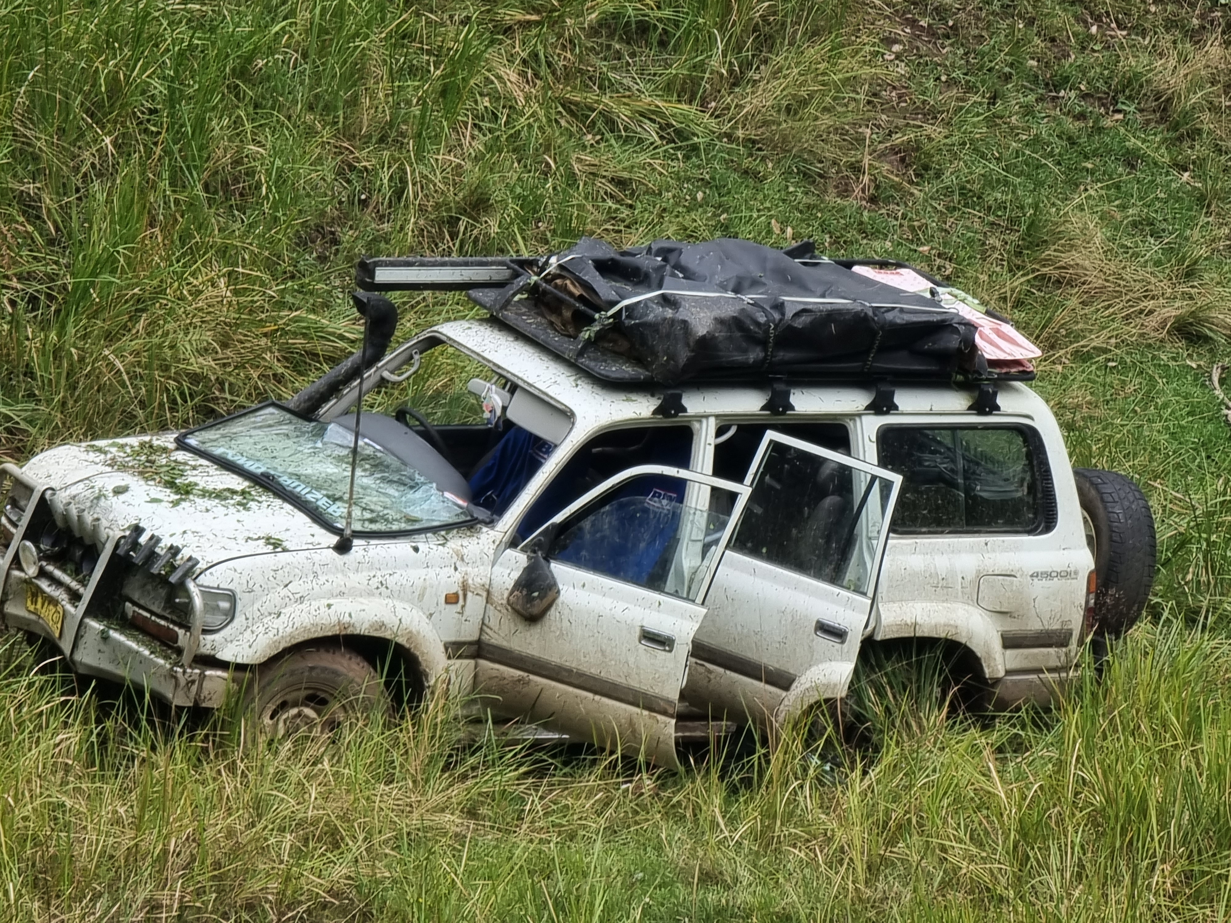 They arrived to find a white Toyota Landcruiser had slid down a steep embankment and stopped on the banks of a river.