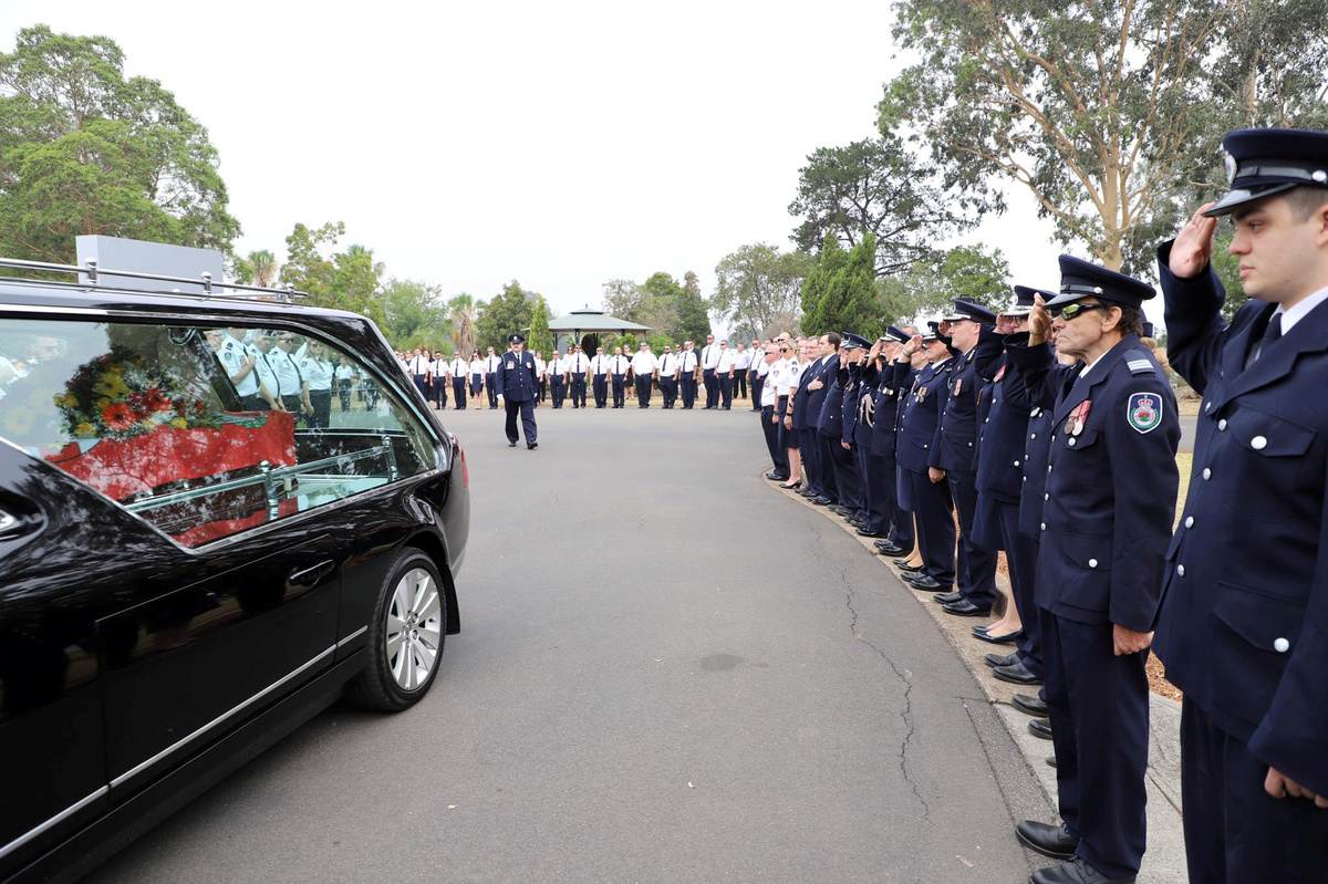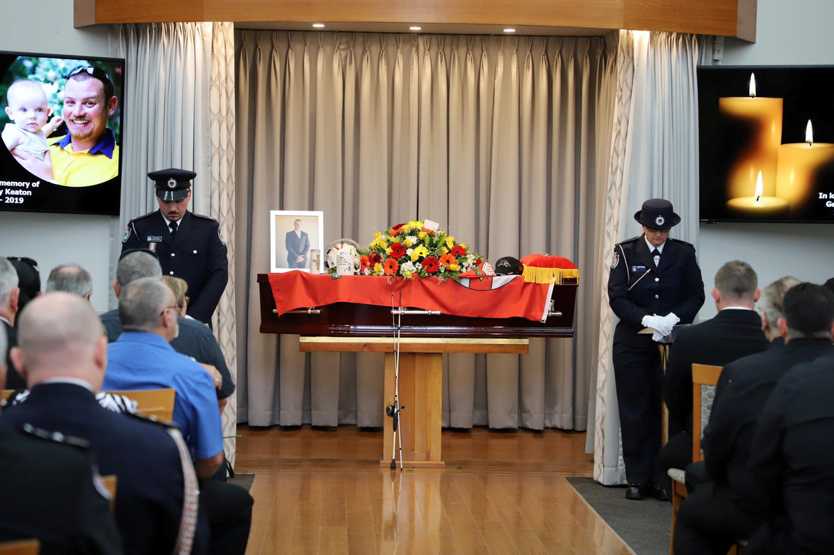 Dozens of firefighters saluted and formed a guard of honour as Keaton's hearse drove into a Sydney cemetery, according to pictures of the funeral posted online by the fire service.