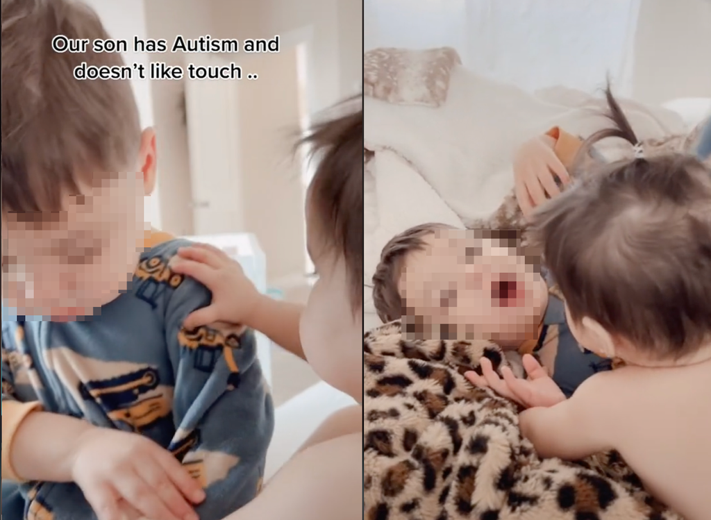 A mother has revealed how her toddler with autism, who doesn’t like physical touch, has “slowly” let his baby sister be more affectionate with him.