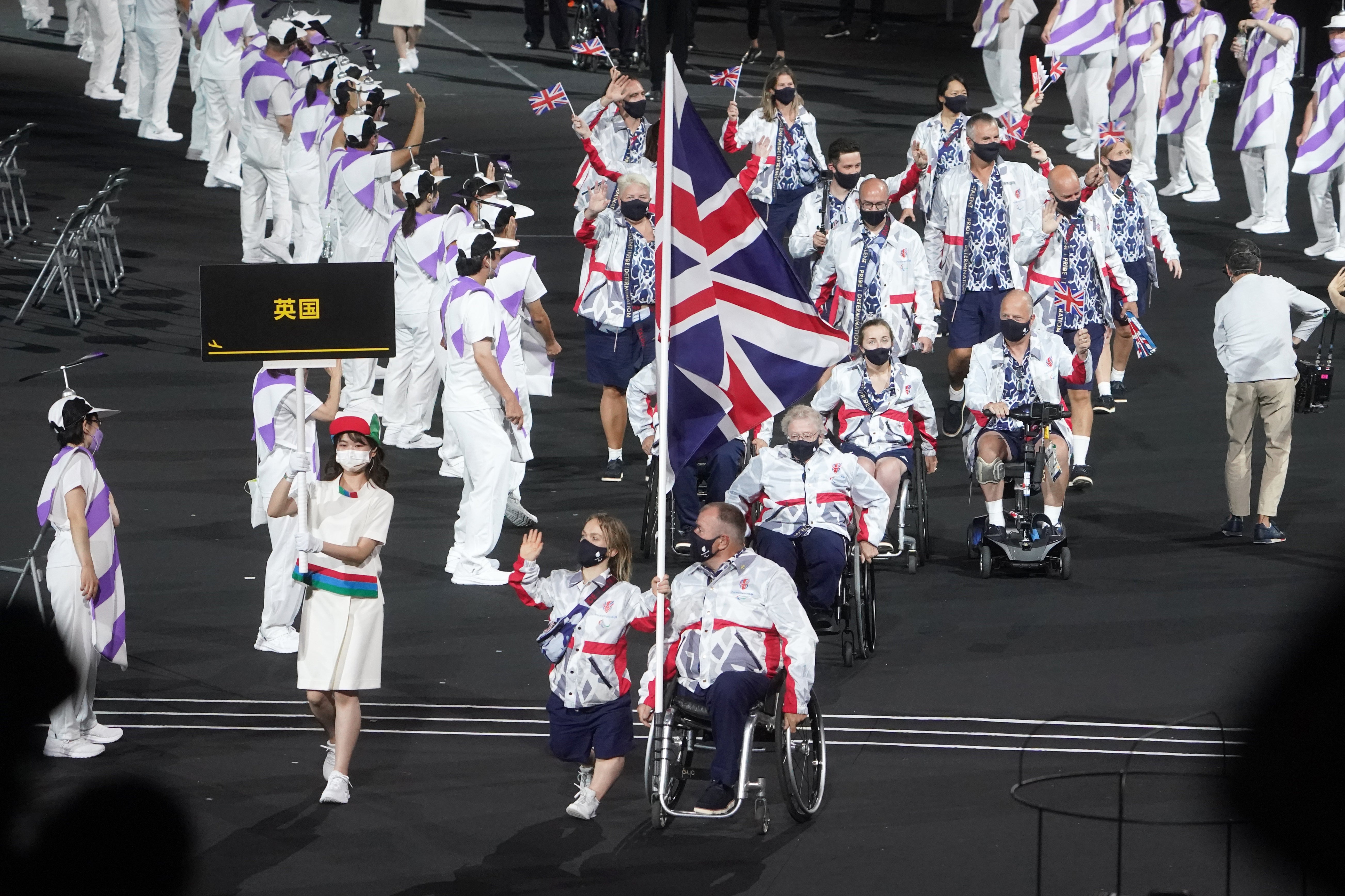 Ellie Simmonds and John Stubbs led out Great Britain’s delegation as flagbearers, smiling behind their masks as they waved for the cameras.