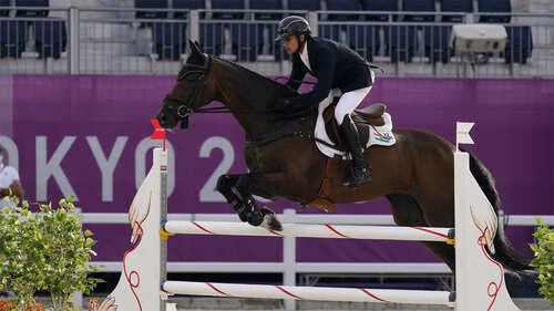 <p>Fouaad Mirza, riding Seigneur, competes during the equestrian eventing jumping final at the Tokyo Olympics. Fouaad finishes at 23rd place in the jumping final. (AP Photo)</p>6/8:Savita saves the day for Indian women's hockey team