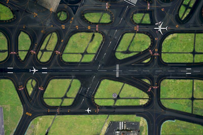 I was surprised to discover how complicated the taxiways are, even though I had expected them to be somewhat complex because they are near the intersection of the two runways. I can't help but worry whether the planes in the photo were able to make it to their own runways without getting lost.