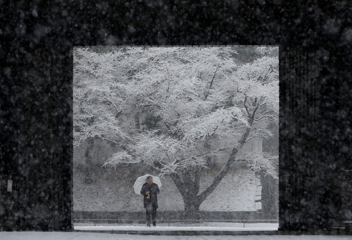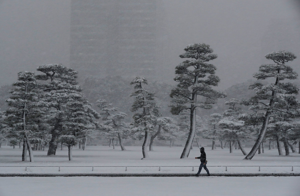 NHK offered detailed recommendations for coping with the weather, including wearing boots with heavy treads, heading home early and not walking with hands in coat pockets in case of slips and falls. It showed people how to walk like penguins.