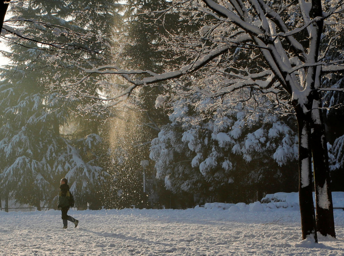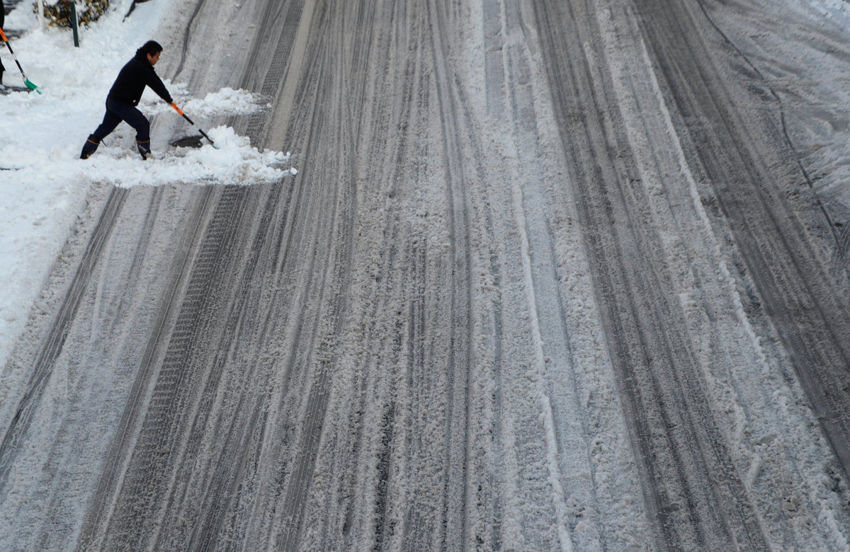 The snow that began on Monday morning tapered off early on Tuesday after dumping some 23 cm on a city that rarely has snow accumulate, with freezing temperatures keeping snow-choked roads slick and pedestrians wary.
