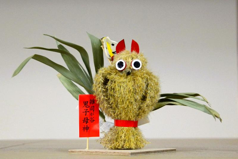 In the area around the Kishimojin temple, you can find a "Susuki Mimizuku" (Japanese pampas grass horned owl), a toy horned owl made of bundled ears of Japanese pampas grass. The local toy has been around since the Edo period and was derived from the temple's folklore.