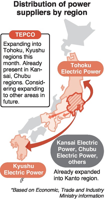 Chubu Electric Power Co. and Kansai Electric Power Co., however, have already entered TEPCO's turf of the Tokyo metropolitan area to supply electricity to households, with TEPCO EP losing about 20 percent of customers there in terms of the household electricity market.