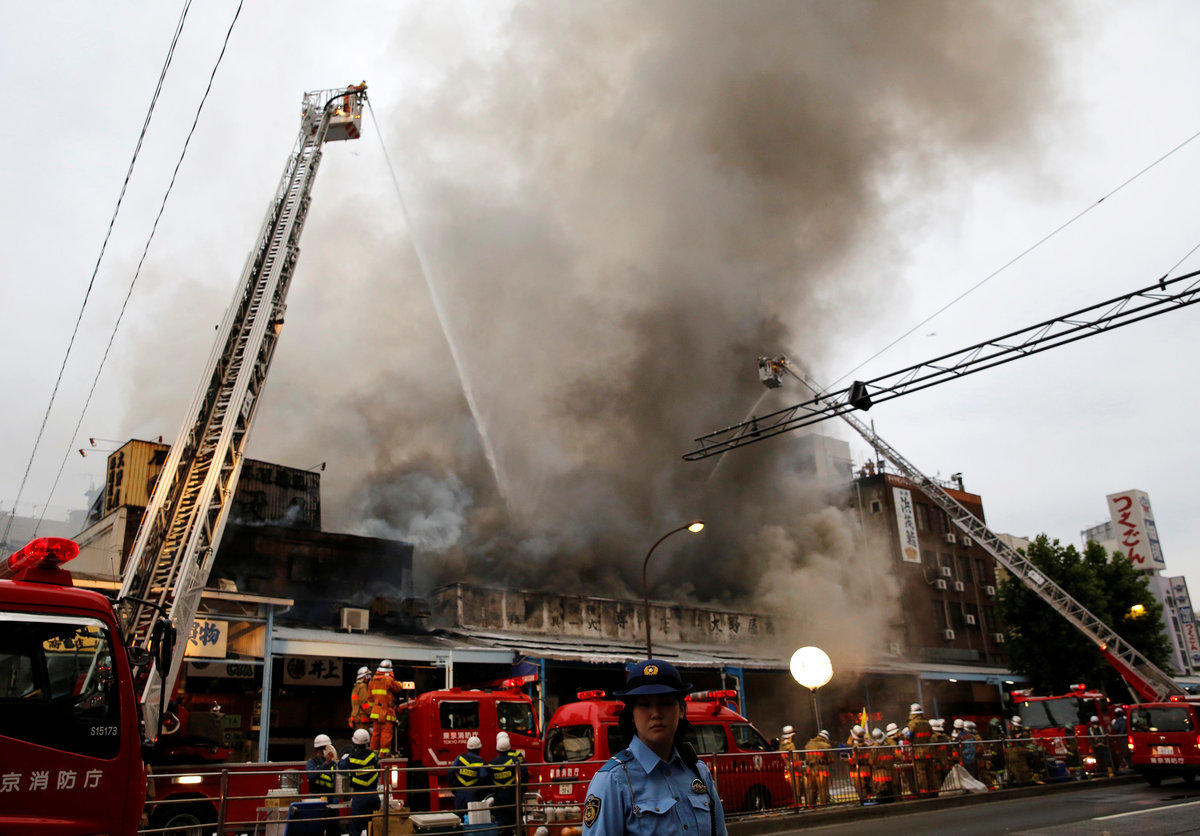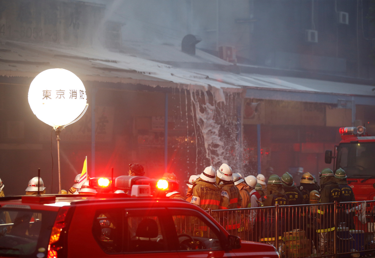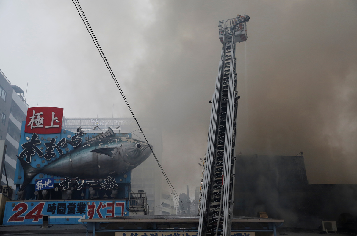 TOKYO (Reuters) - Dozens of Tokyo firefighters were battling a blaze on Thursday at the world's largest fish market and one of the capital's most popular tourist sites, as grey smoke billowed over the city.