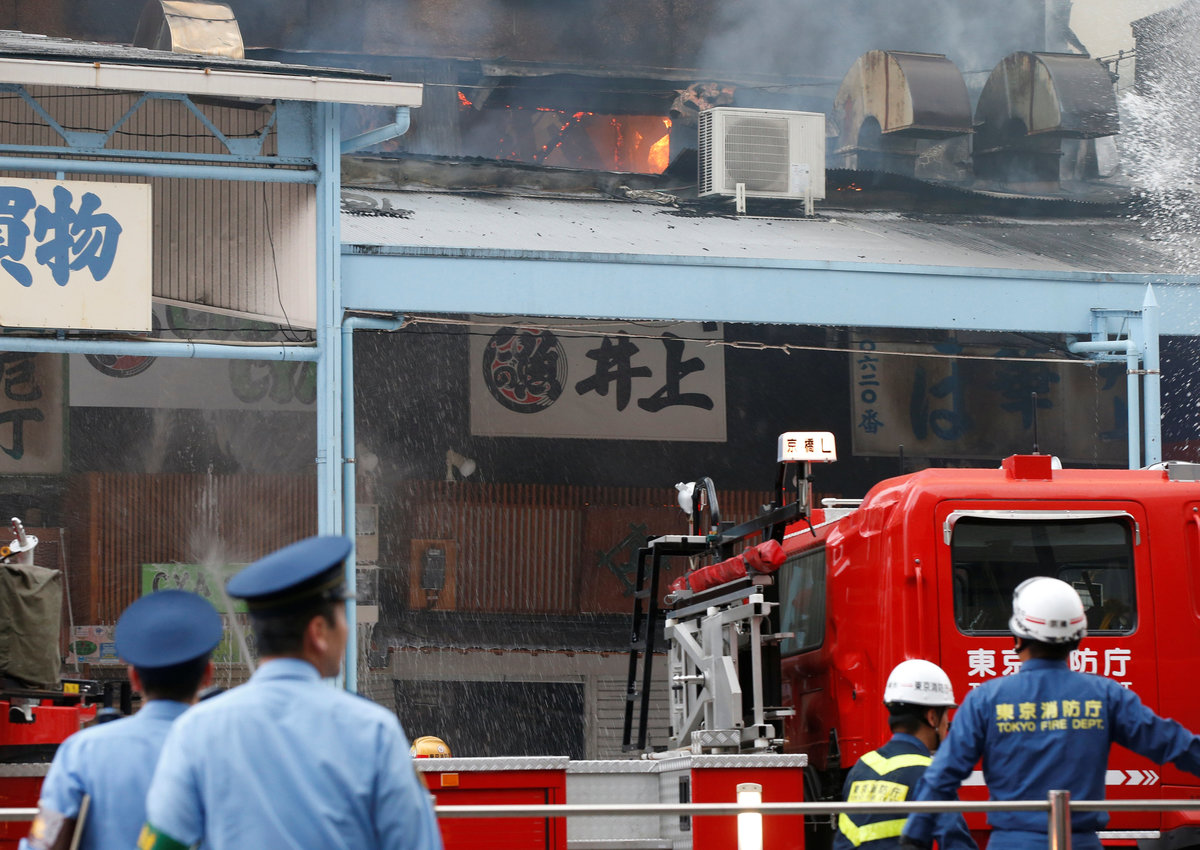 The fire was in Tsukiji's "outer" market - an area packed with informal restaurants where tourists can tuck into fresh seafood plates and sushi.