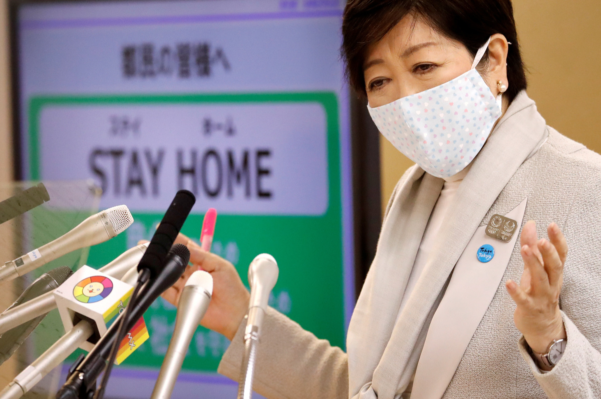 Speaking at a livestreamed address, Tokyo Governor Yuriko Koike said the number of commuters on one of Tokyo's busiest subway lines had decreased by 38% since the emergency was declared, less than the government's target for an 80% reduction in person-to-person contact.