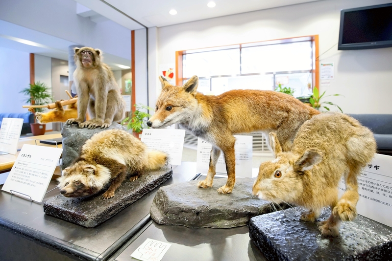 At the entrance, stuffed animals, such as black bears, wild boars and Japanese deer, welcome visitors. They were preserved from animals killed in traffic accidents or diseases, not from animals captured only to be stuffed. Visitors can touch them directly and feel the biodiversity here. "Each one has a different touch," Somiya said.