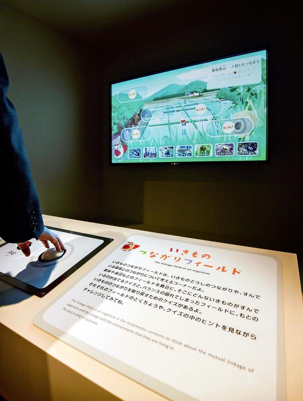 In the exhibition room, illustrations, videos and audio guides are used to introduce the ecology and connections of living creatures in Japan.