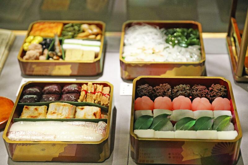 Of all the exhibits, the most popular one according to a museum staff in charge are the replicas of bento boxes that wealthy merchants and members of samurai households brought to cherry blossom viewing gatherings during the Edo period (1603-1867). Culinary researchers and other specialists studied antiquarian books and created the replicas, which contain gnomefish sashimi and dishes using round-nose flounders and other fish caught in what is now Tokyo Bay.