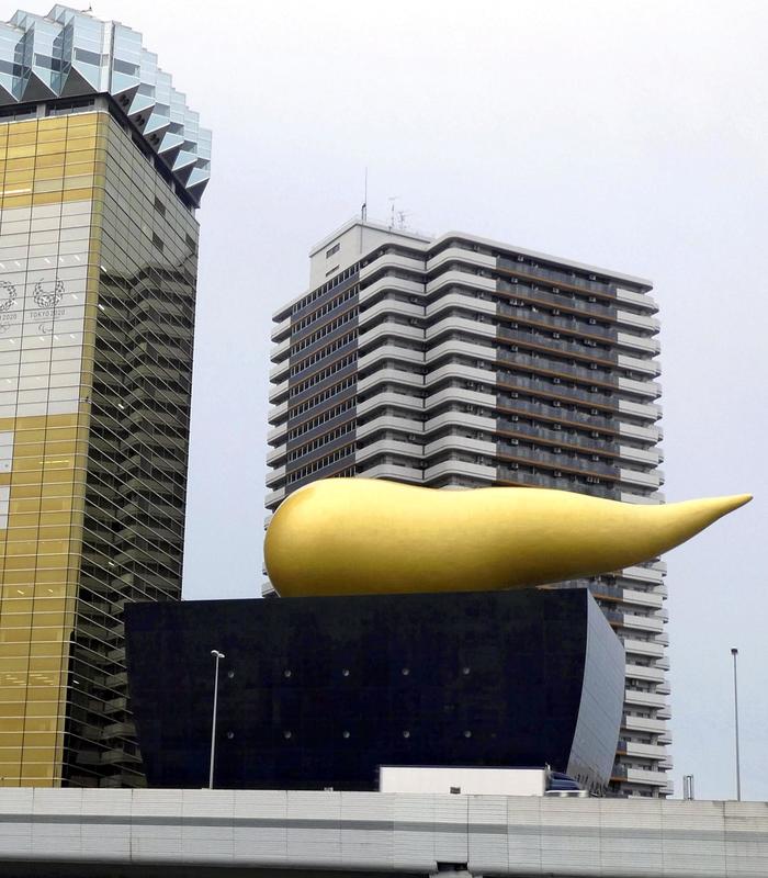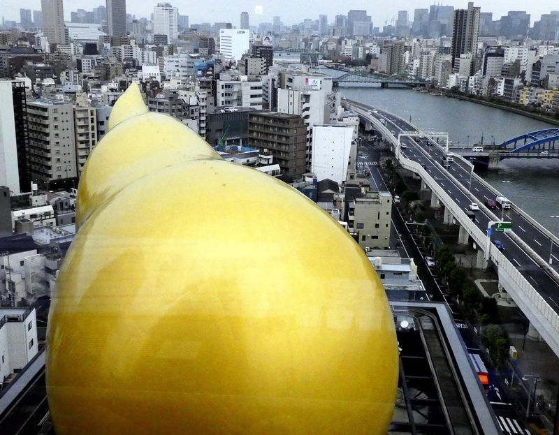 Sitting atop a building across the Sumida River from the famous Kaminarimon gate in Tokyo's Asakusa area rests a humongous and puzzling golden object.