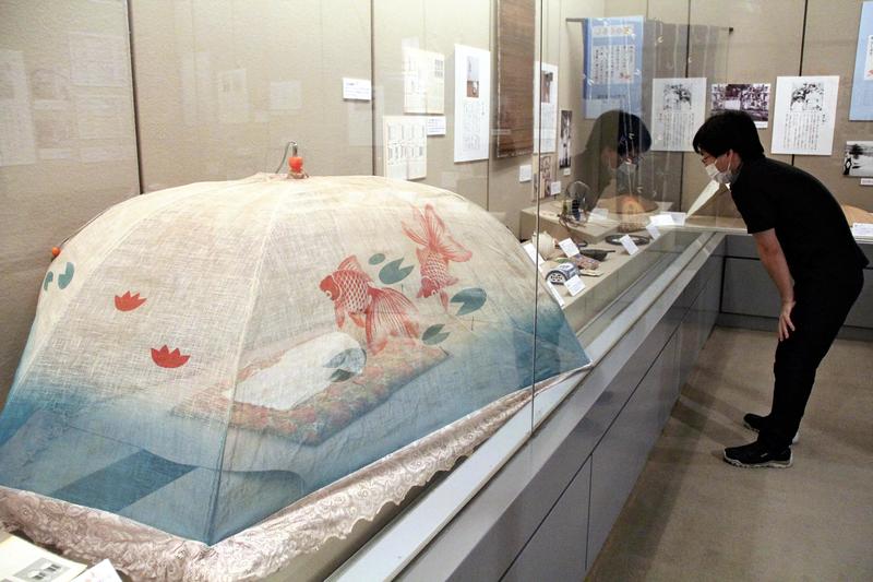 Daily summer necessities such as mosquito nets and electric fans, as well as children's summer-holiday picture diaries, are on display portraying bygone summers in a seasonal exhibition at the Suginami Historical Museum in Suginami Ward, Tokyo.