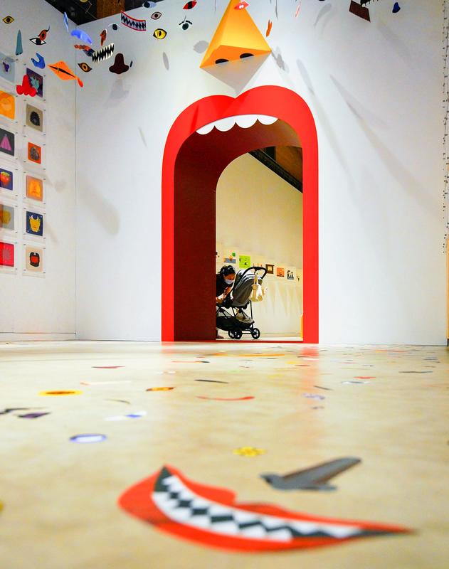 A section of a short-term exhibit was created around the theme of "faces" by a Japanese duo known as tupera tupera. As visitors stroll through the section, they are stared at by faces belonging to a baby, a ghost, a face made from fruit and so on.