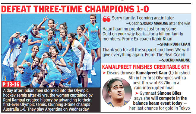 Against Australia, the team was all aggressive intent, holding nothing back in both the attack and defence. Australia dominated ball possession but the Sjoerd Marjinecoached team took control of the proceedings. While each one played a part, it came down to goalkeeper Savita Punia to put up the performance of her career and the 29-yearold gave it her all. Covering every inch of her goal with quick reflexes and finesse in stickwork, she swatted away nine goal-bound balls to ensure this was not to end just a pipe dream.